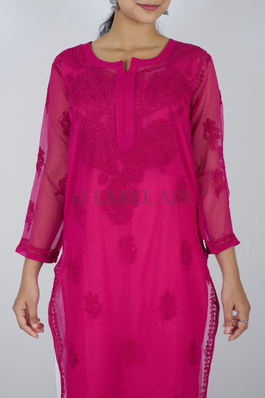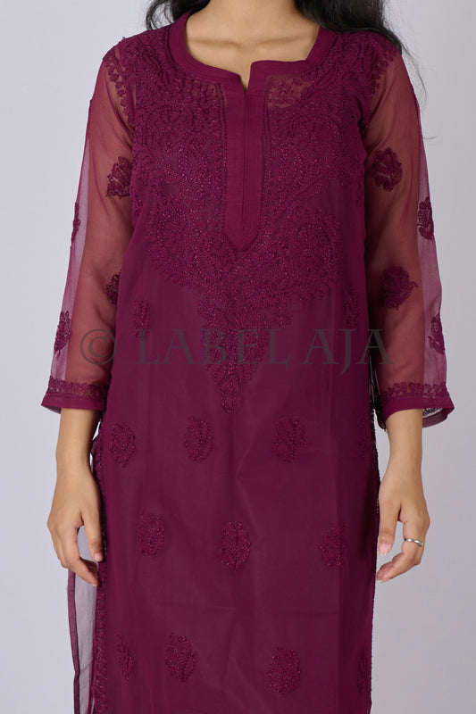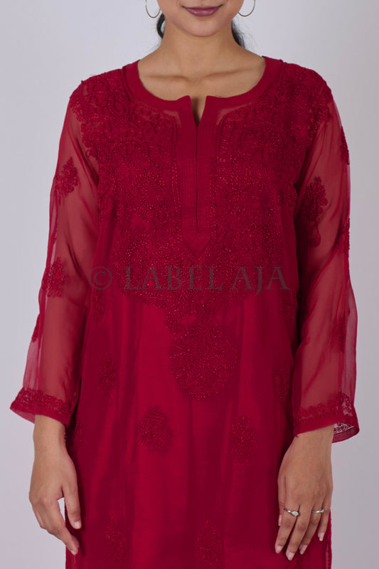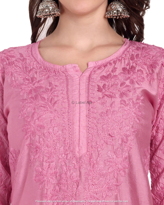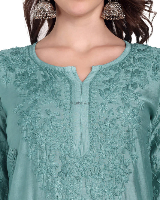 Meher Chanderi silk Chikankari Kurti & Palazzo Set