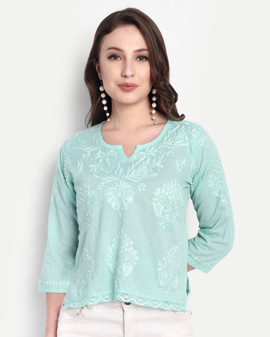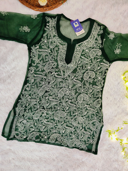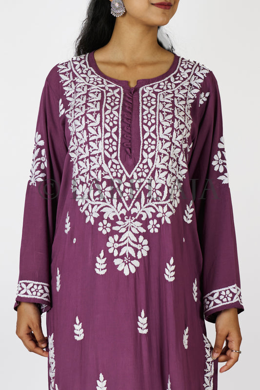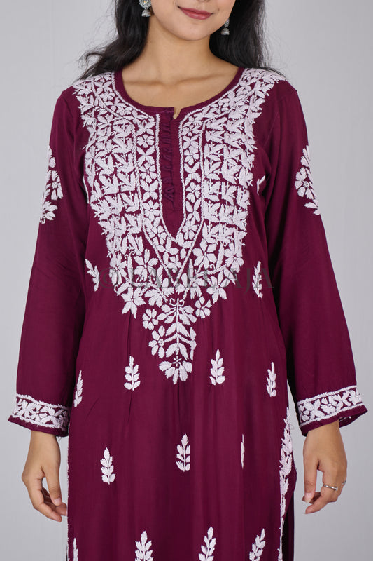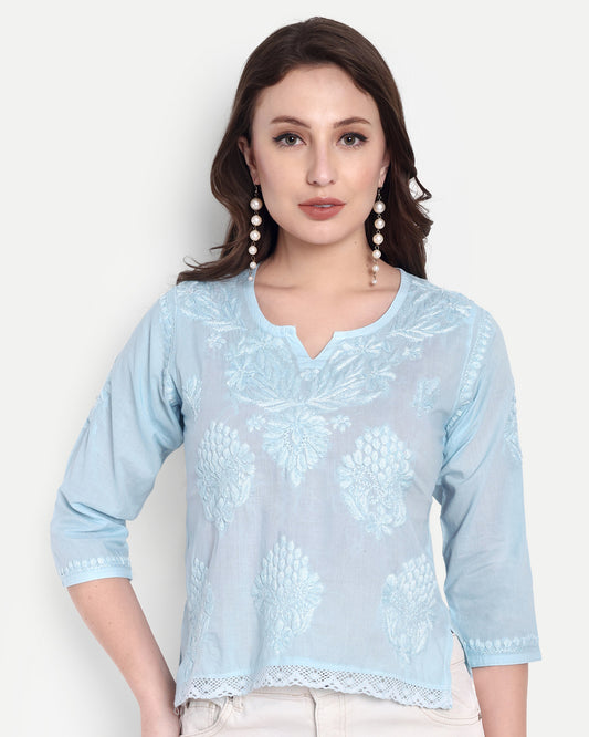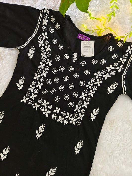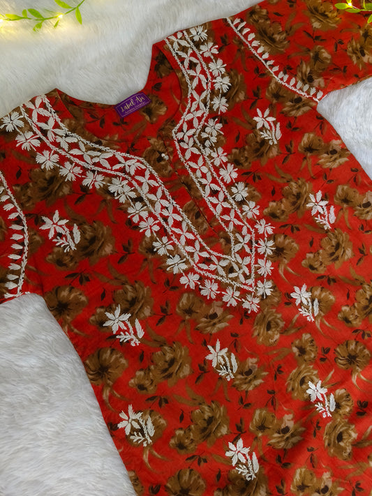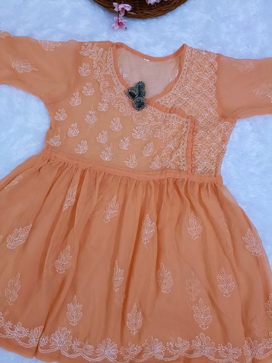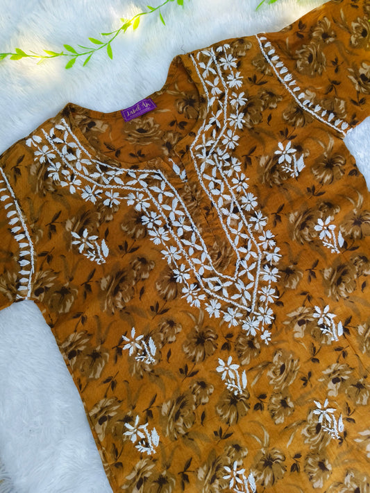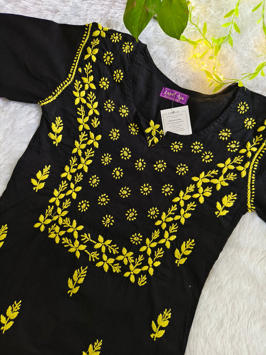 A. Generally chikankari is worn a bit loose so go with one size plus if not sure. General rule is bust size + 2 inch.