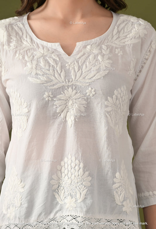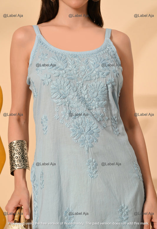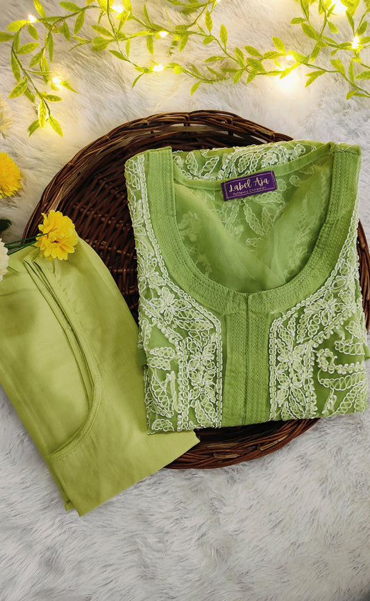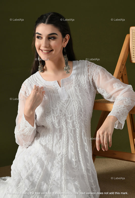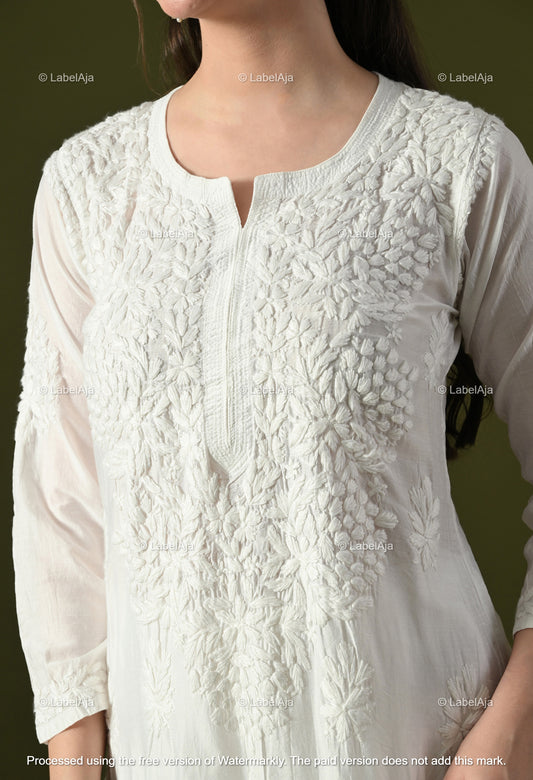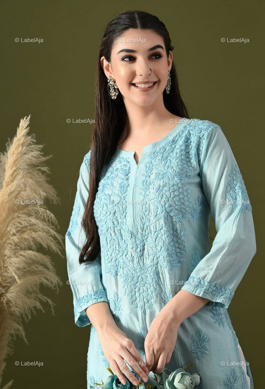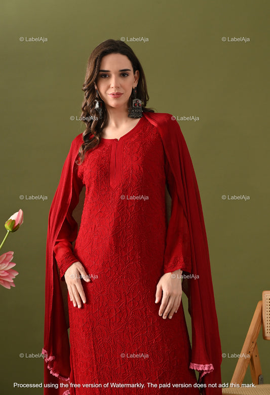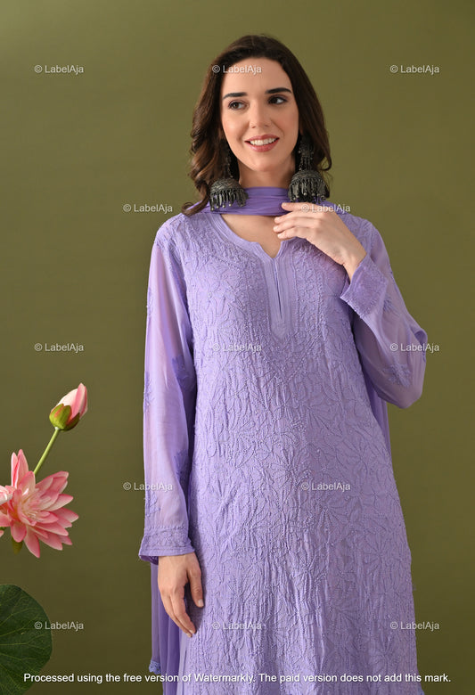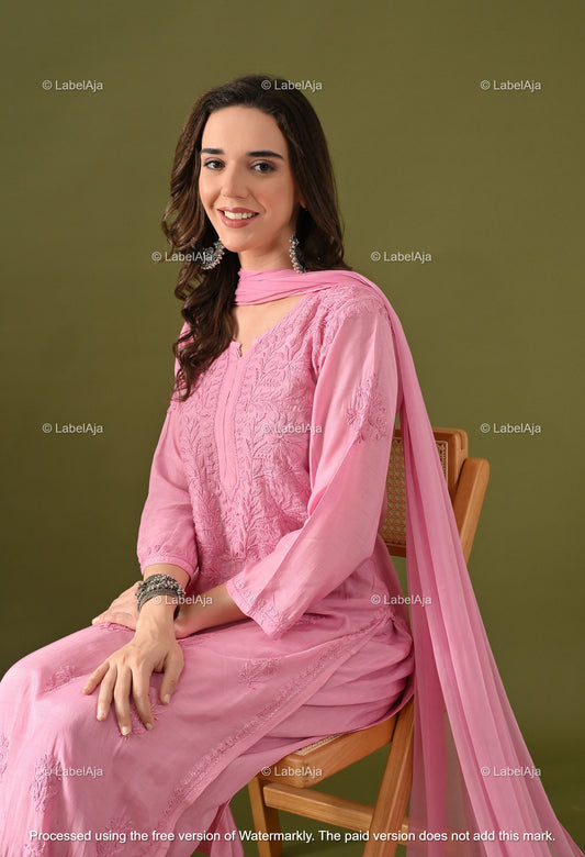 Lyla muslin chikankari kurti, palazzo and dupatta set