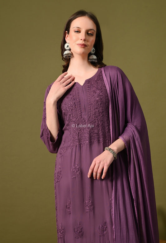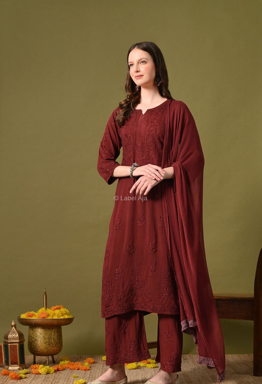 Lyla muslin chikanakri kurti, palazzo and dupatta set