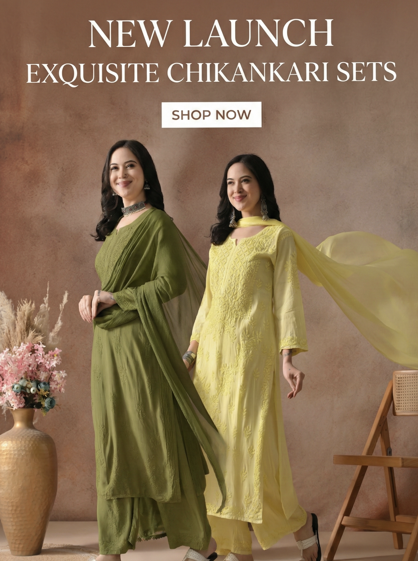 Exclusive collection of Chanderi, Muslin, Viscose withj mukaish embellishment.
