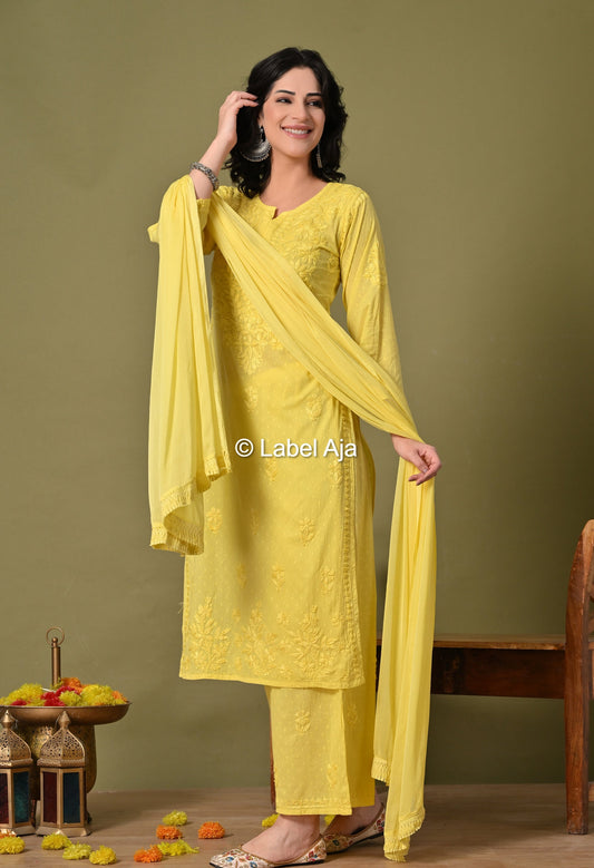 Maya Dobby cotton Kurti, Palazzo and dupatta set