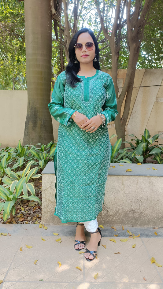Chanderi silk Lucknowi Chikankari Long Kurta