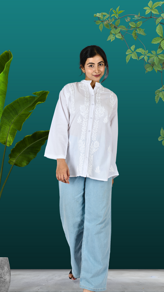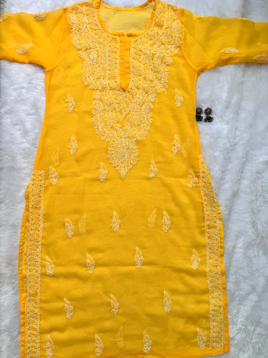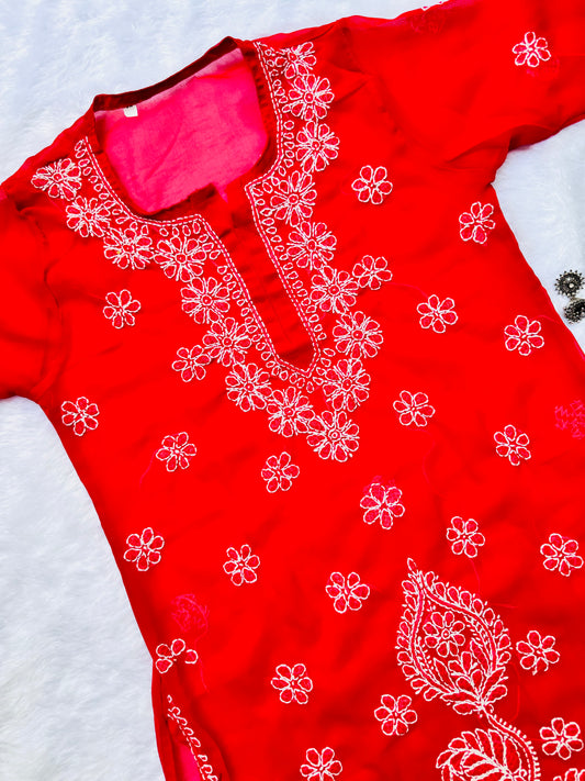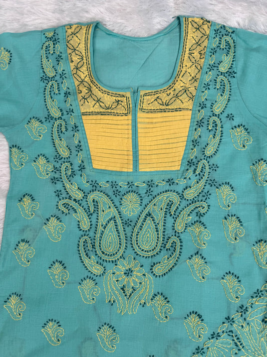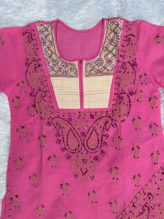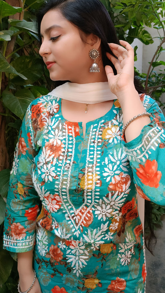 Meher Chanderi silk Chikankari Kurti & Palazzo Set