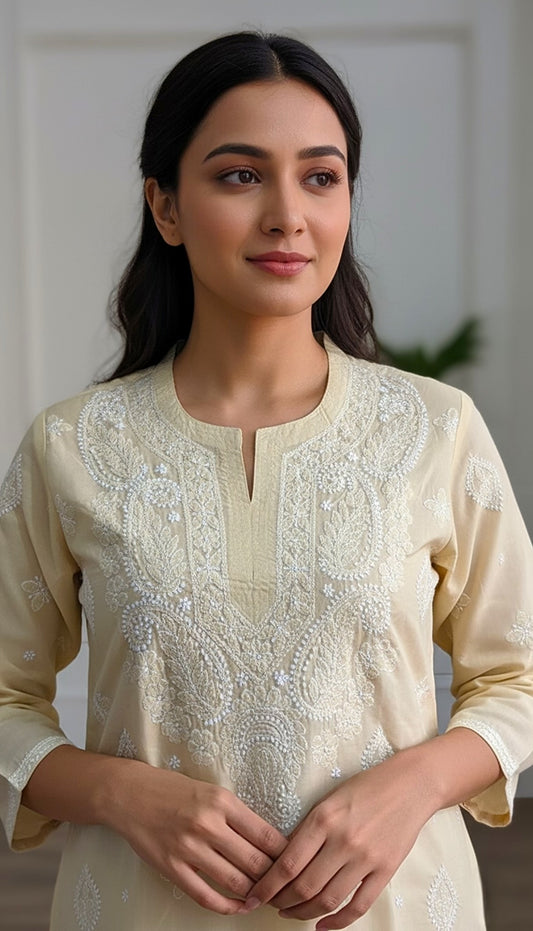 Cotton chikankari kurti with matching slip