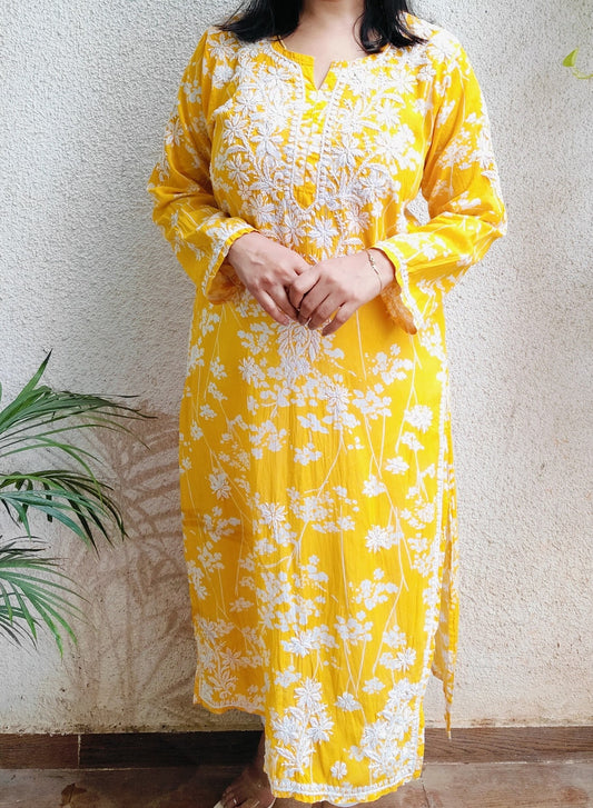 Label Aja Hand Embroidered Printed Mulmul Lucknowi chikankari long kurta