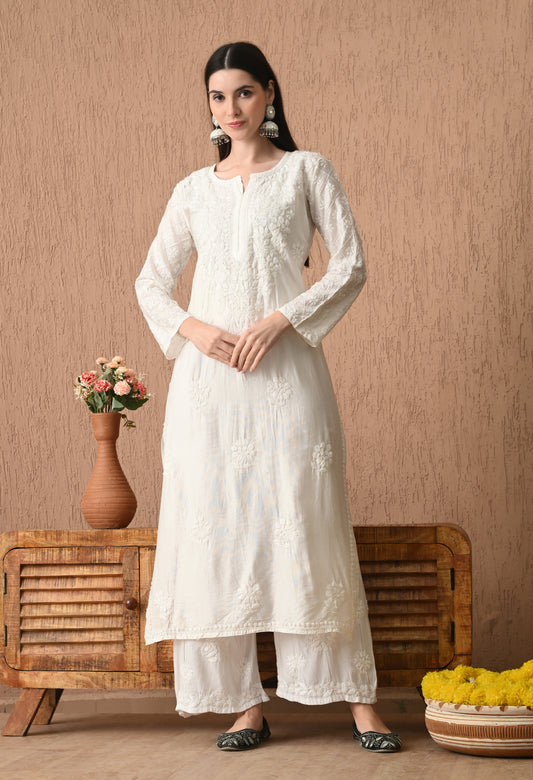 Meher Chanderi Silk Kurti and Palazzo set White
