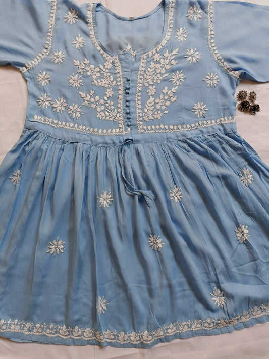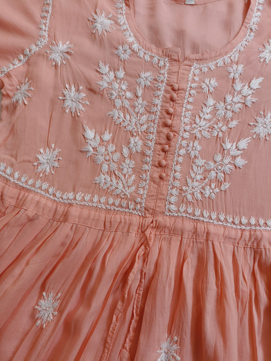 Georgette Short Lucknowi chikankari kurti with mirror