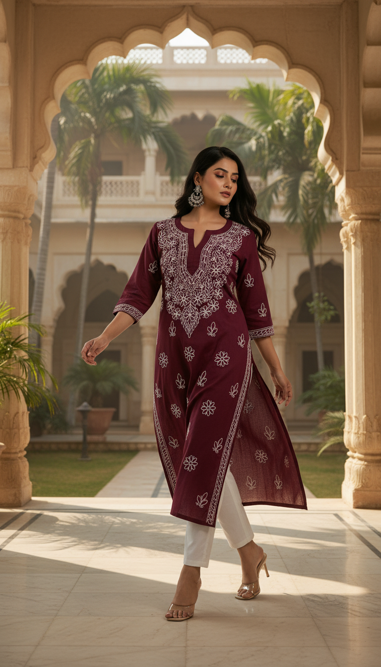 Pure cotton Kurtis with fine chikankari work.