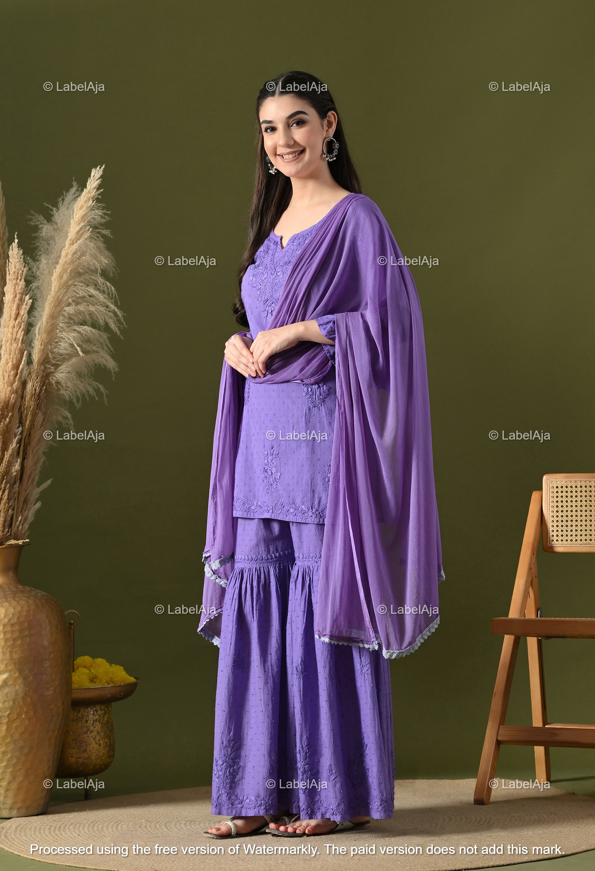 • Elevate your ethnic wardrobe with this elegant three-piece garara set that combines comfort and sophistication:
