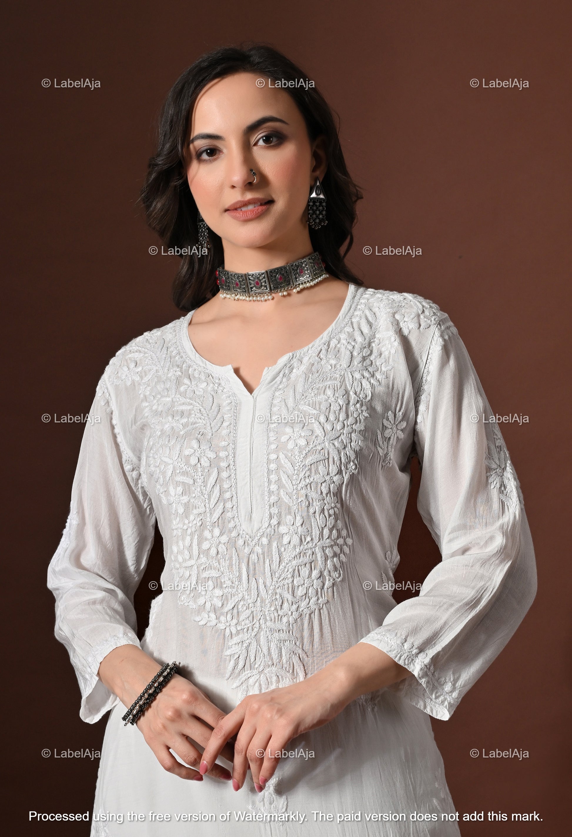 • Detailed same color hand-embroidered Chikankari work all over