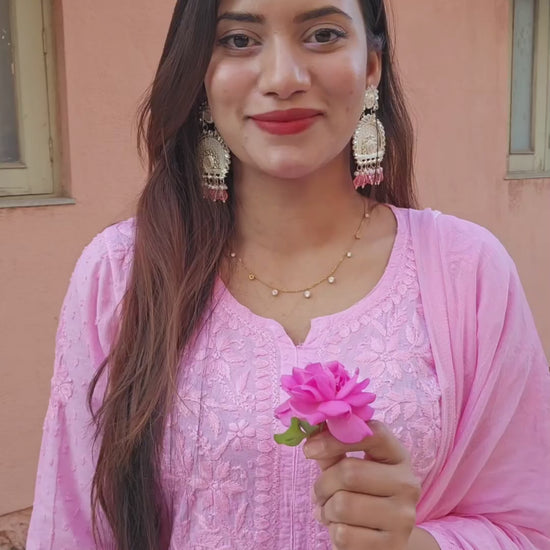 Kurti: Beautifully handcrafted Chikankari embroidery on soft, breathable cotton fabric ensures a blend of tradition and modernity. The flattering silhouette adds grace to any occasion.