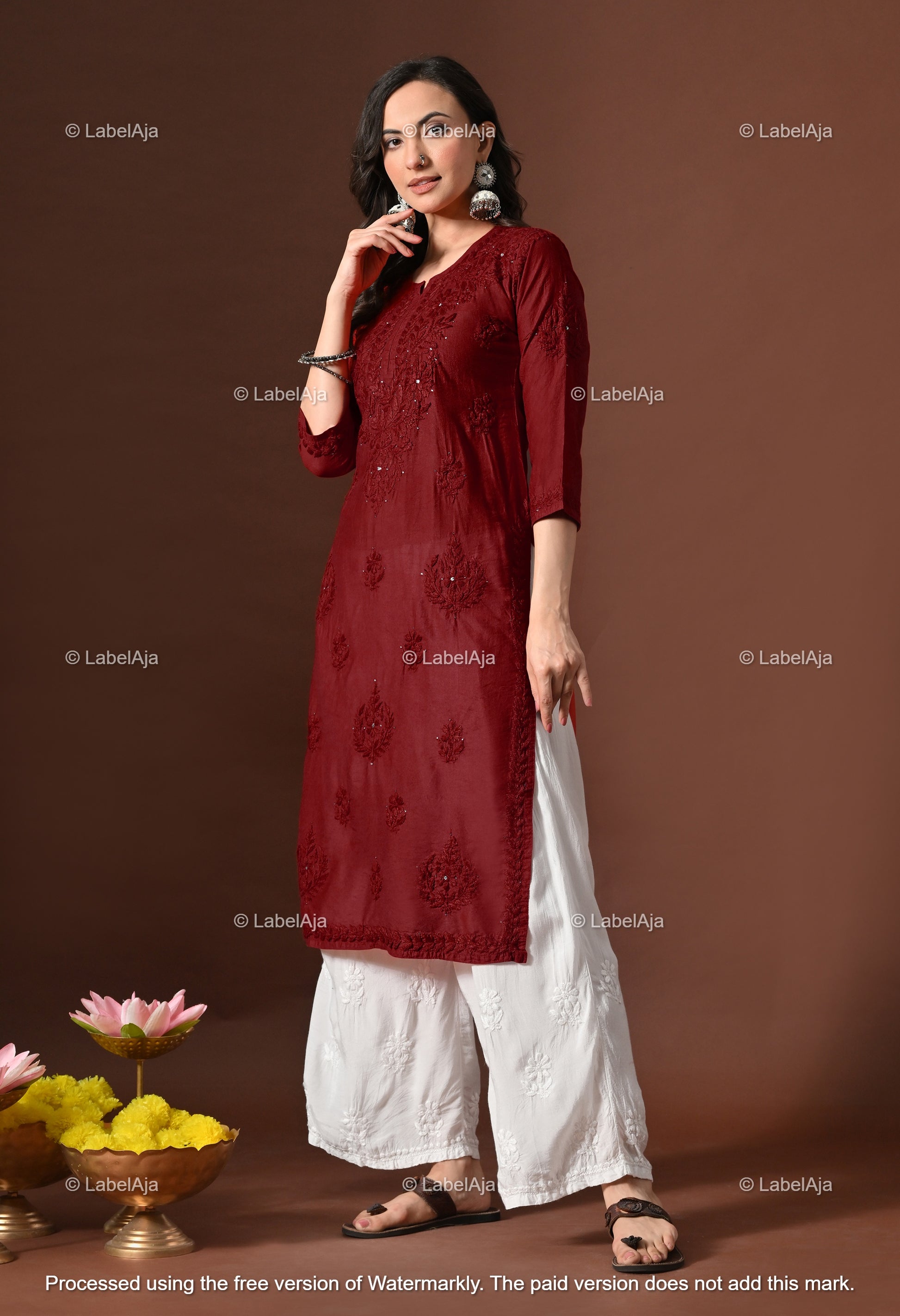 Nakshtra Chanderi silk Mukaish work Chikankari kurti