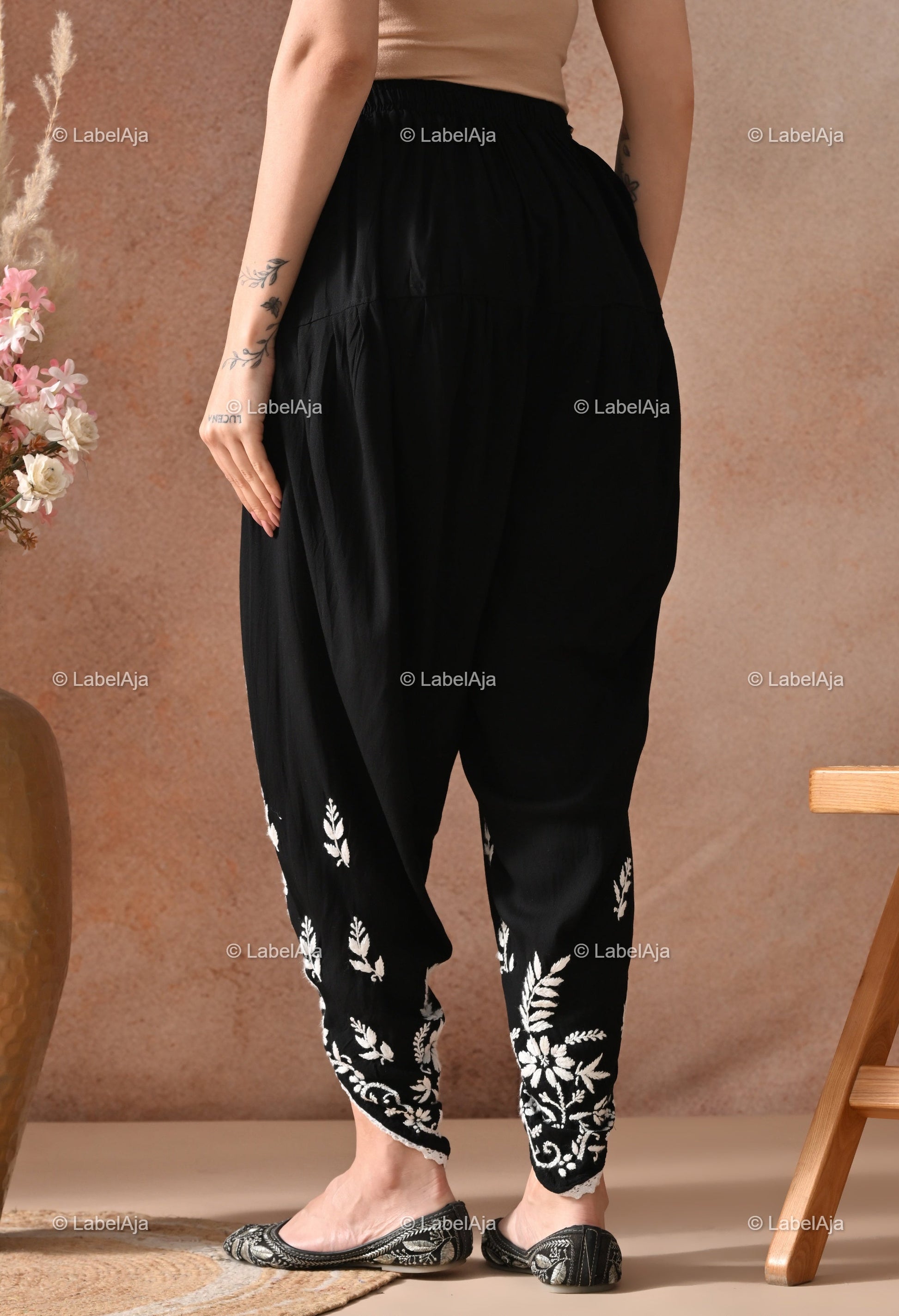 - Rayon hand-embroidered Chikankari Dhoti pant